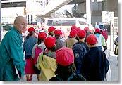 平成14年10月30日 今年もまた、かわいい訪問者が訪ねてくれました。 松戸市立旭町小学校の3年生のみんなが寒空の中、元気いっぱい歩いてやってきました。